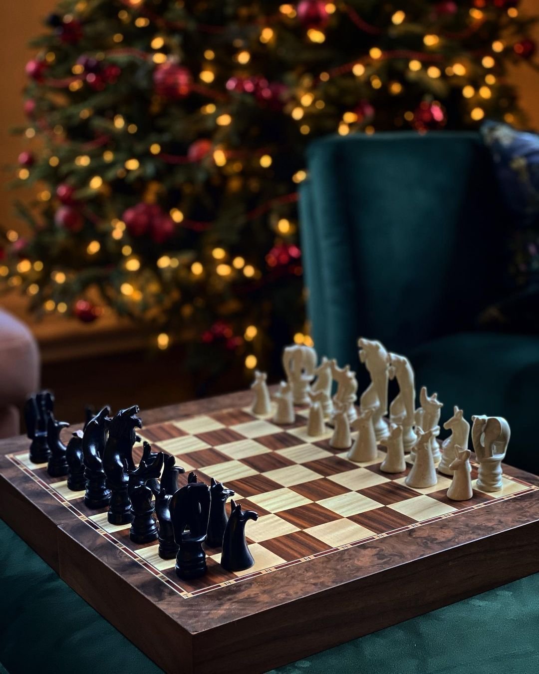Khi được đặt ở phòng khách, phòng làm việc hay kệ sách, bàn cờ không chỉ trở thành vật dụng trang trí mà còn là “điểm dừng” cho ánh nhìn – nơi hội tụ giữa nghệ thuật, cá tính và cảm xúc. Ánh sáng phản chiếu từ những quân cờ trong suốt hay ánh vàng của mặt bàn gỗ vân sang trọng sẽ làm không gian thêm ấm áp và độc đáo.